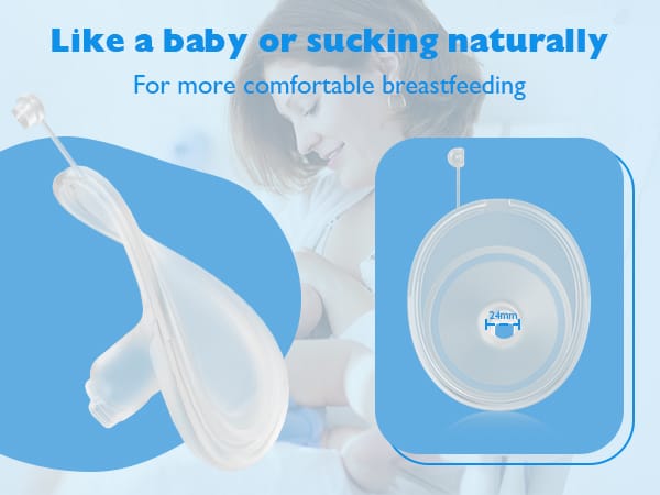 The pump comes with a 24mm shield and includes soft silicone inserts in sizes 21mm, 19mm, 17mm, and 15mm – ensuring a perfect fit for a wide range of moms. The materials are BPA-free and food-grade, ensuring safety for both mom and baby.