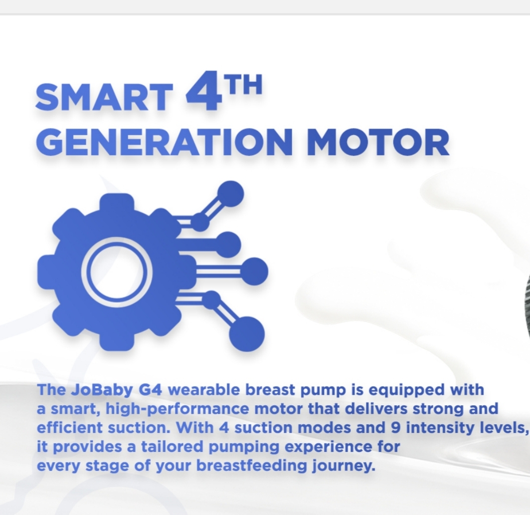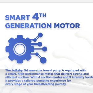 The JoBaby G4 wearable breast pump is equipped with a smart, high-performance motor that delivers strong and efficient suction. With 4 suction modes and 9 intensity levels, it provides a tailored pumping experience for every stage of your breastfeeding journey.